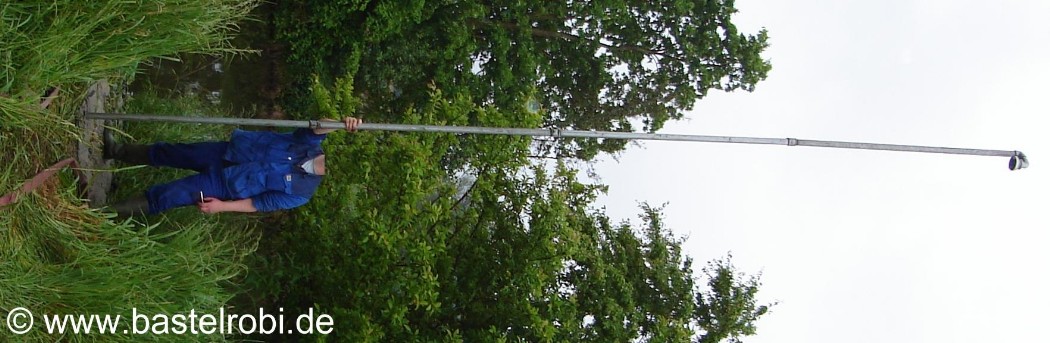 Anfänglich sind die 6m Rohre zugegebener Maßen etwas ungünstig da der gefüllte Feuerwehrschlauch ja auch dran hängt. Mit 2 Mann aber kein Problem.