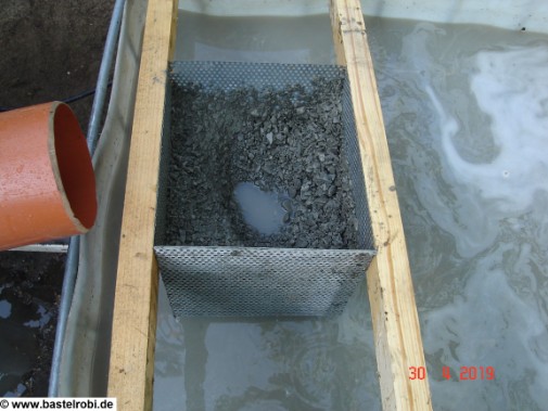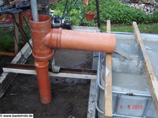 eine 150er KG-Rohr mit T-Stück zur Rückführung des Spülwassers eingesetzt und