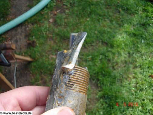 Hier sieht man meine erste selbstgebaute Bohrspitze aus